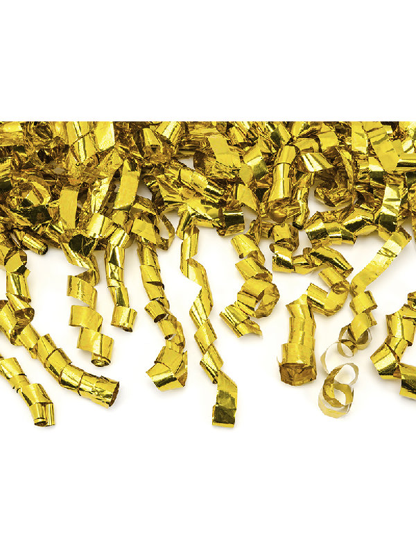 Konfeti top koji ispaljuje duge metalic zlatne trake.