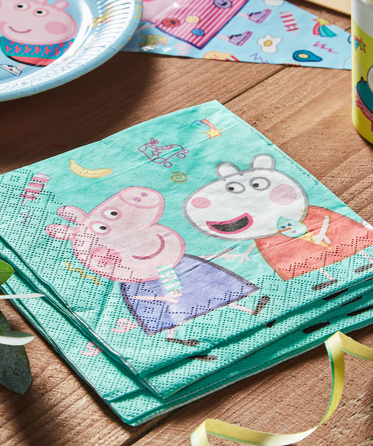 Uz Peppa papirnate salvete držite neuredne prste, mrvice i prosipanje pod nadzorom poslužujući hranu i piće za rođendansku zabavu. Odaberite odgovarajući stolni pribor za potpuni zabavan izgled rođendanskog stola.